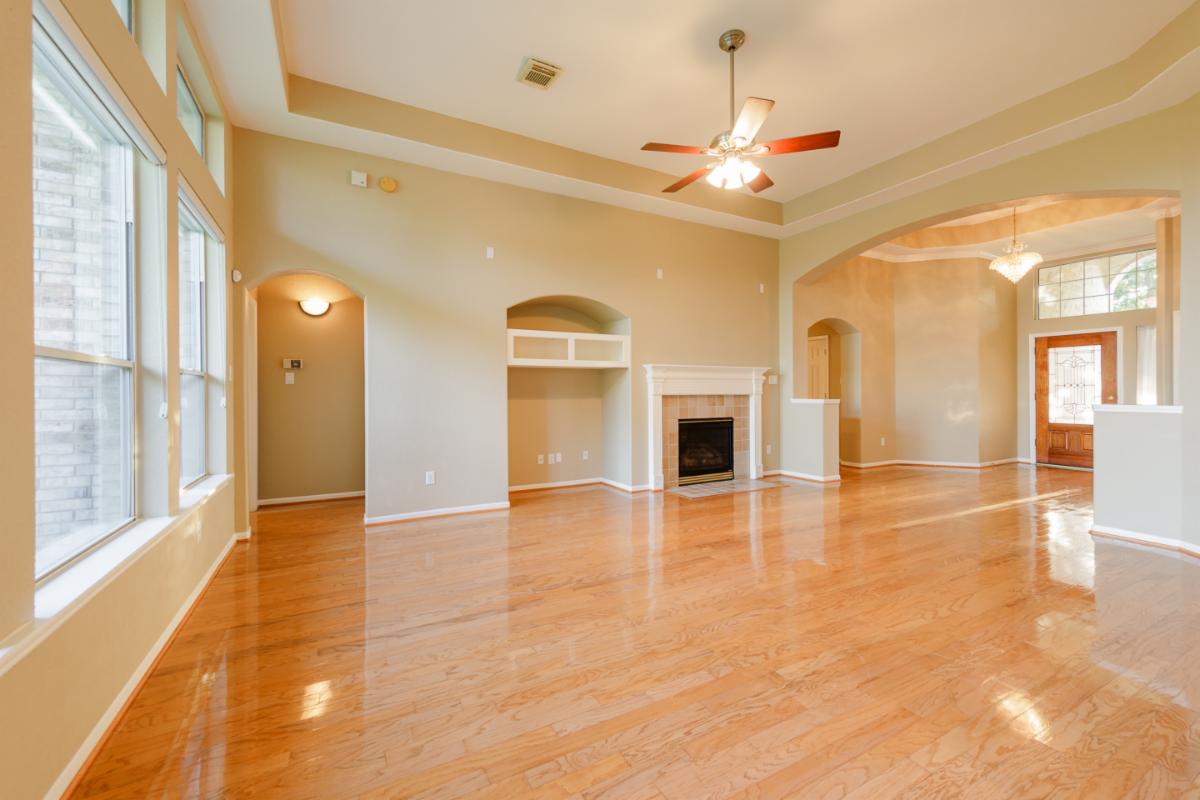 This unique 1 1/2 story home is located in sought after Brazos Landing on the lake and on a cul-de-sac! It features a spacious and open floor plan with 4 bedrooms with 3 full baths. All the bedrooms are down with a split plan for additional privacy. The gourmet kitchen has Avenza counters, stainless steel appliances and 42″ maple cabinets. There is no carpet in the downstairs living areas, the floors are all wood and 16x 16 tile. The bedrooms have carpet. Upstairs has a HUGE game room and full bath. Zoned to Commonwealth Elementary, Fort Settlement Jr. High and Clements High School. Incredible location, it is close to shopping, freeways, the hospital and the UH Campus. No Flooding.