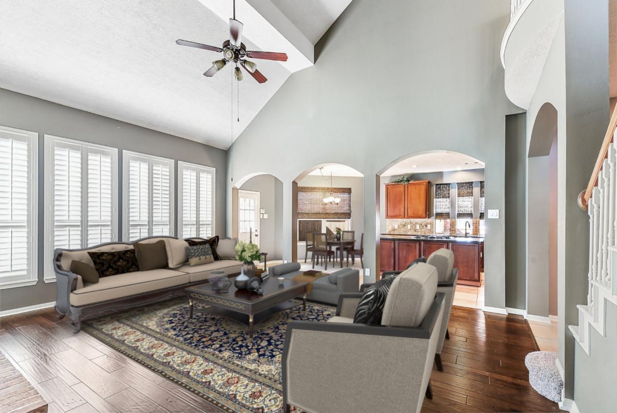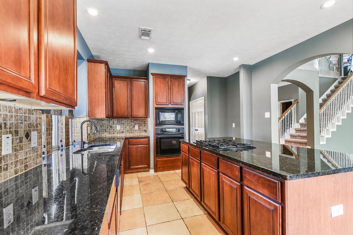 LOCATION, LOCATION, LOCATION! This Beautiful Seven Meadows home is close to 99 and West Park Toll Road. It is zoned to Holland Elementary, Beckendorff Jr. High and Seven Lakes HS!! It features 4 bedrooms, 3 1/2 baths on a large 11,000+ Sq. Ft. Lot! It has an open floor plan with both formals and a beautiful kitchen open to family room. The kitchen has 42″ cabinetry, granite counters, custom stone backsplash and a large island. The family room boasts soaring ceilings, hand scraped wood floors, plantation shutters, and built-in cabinetry. The formal living could easily be used as an office. The master is down with an executive master bath with dual vanities, separate shower and soaking tub. The master closet is HUGE! You will have to check it out when you visit. Upstairs features a large game room with media closet, three additional bedrooms and two full baths.